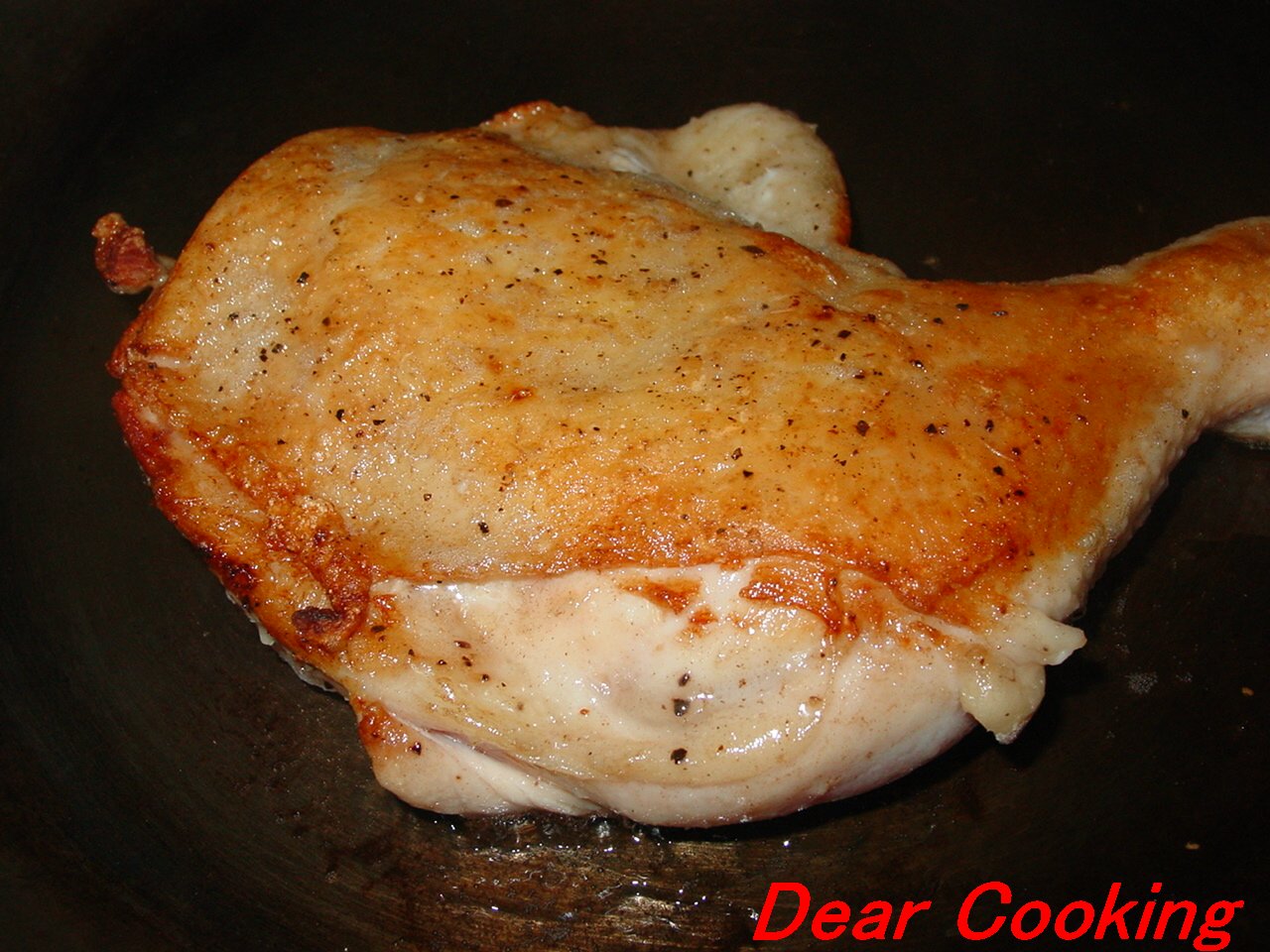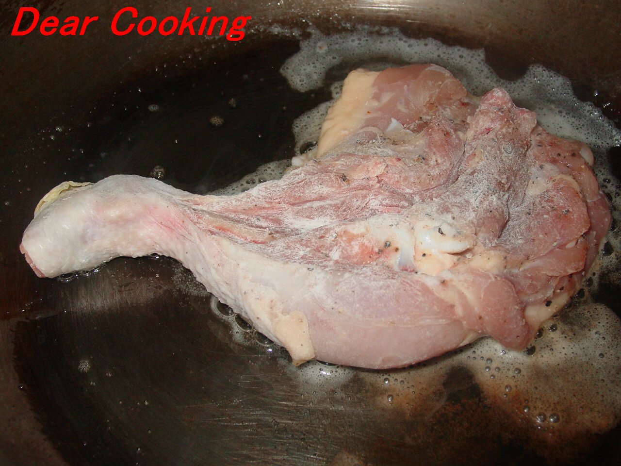 4.強火のまま皮が色よく焼けるまで焼いていく。この時もも肉は動かさない。